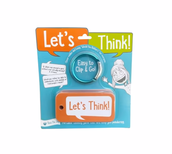 This portable card set is the perfect bonding game playable anywhere, anytime and with anyone! The think card set includes riddles and “would you rather” dilemmas that develop conversational skills, critical thinking, and listening abilities in children. Teach kids how to think outside of the box by solving riddles and debating dilemmas. Practicing communication skills play an important role in the emotional and mental development of children. These cards jump-start interesting discussions and are a fun way to pass time!