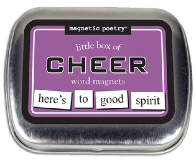 Cute as a button, this tiny little tin contains 72 word magnets with uplifting words such as: celebrate, health, spirit, live, dance, and more. Very portable, and useful for many creative activities.