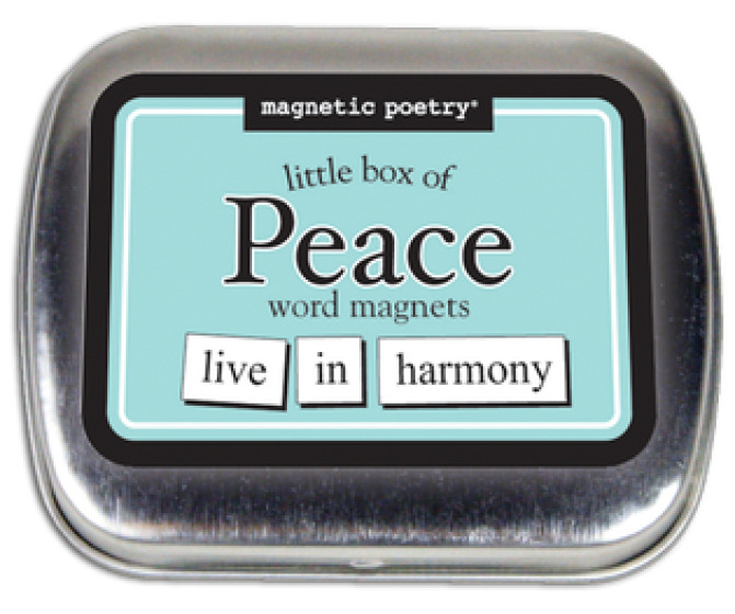 Cute as a button, this tiny little tin contains 72 word magnets with uplifting words such as: together, voice, harmony, good, calm, and more. Very portable, and useful for many creative activities.