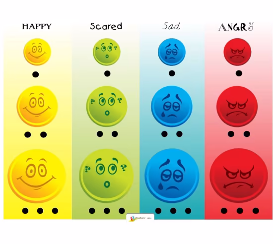 The colorful Mixed Emotions "Junior" feelings chart and people pawns provide an engaging tool for young children to identify and express their emotions and to also indicate the intensity (small, medium or big) of their emotions. Instructions are included for three therapy activities (Show Me How You Feel, Thinking About Feelings, and Coping With Feelings). On the reverse side of the board is a black and white version of the chart that can be copied and sent home with the child; ideas for "home assignments" are also included. Through the use of these engaging materials, therapists can use cognitive-behavioral techniques with even very young children. Recommended age 3-8