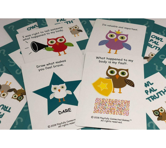 Owl Pal Truth is a safe, innovative way for children to process feelings associated with abuse. In a non-threatening True/False/Dare game, players use decoders to unmask answers to statements associated with abuse. With colorful illustrations and engaging interaction, these cards will be used again and again.