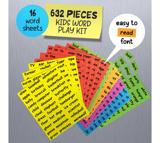 Poetry Tiles Kids Word Play Kit - 632 Word Magnets