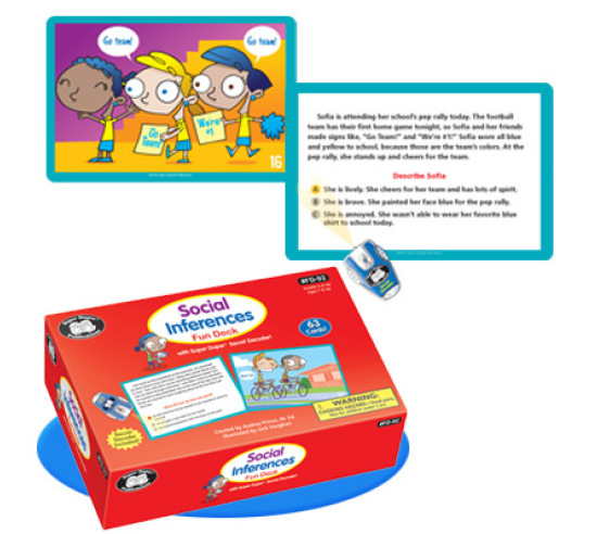 Set of 63 social story cards and a secret decoder will help children build social skills, empathy, and emotional intelligence. Kids will enjoy using the secret decoder to see if the answer is correct. Multiple ideas for game play. Recommended age 7-14. Cards measure 4" x 6". Three card types include: