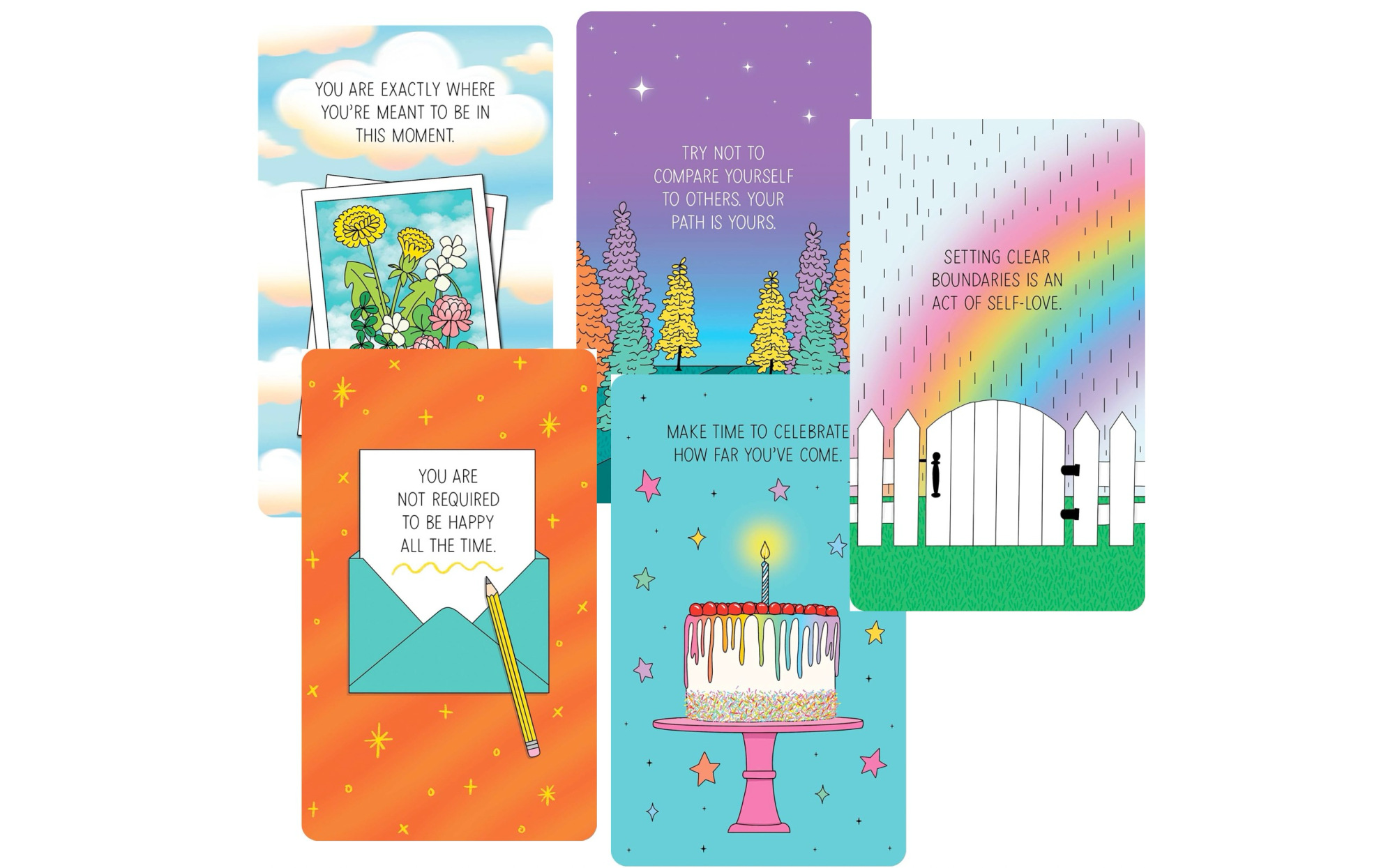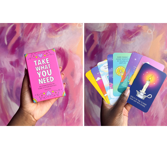 Each of these bright, colorful cards from the creator of @PositivelyPresent offers a quick and portable pick-me-up. Choose a card at random. Let the words resonate and focus on their meaning. Use them to set your intention for the day and repeat when needed. Incorporating this simple practice can help you gain clarity, let go of fear and anxiety, and bring out your best self.
