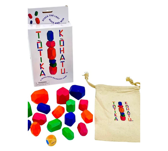 Tu Kohatu is a traditional Maori competition played by stacking stones as high as possible on beaches, near rivers or other places with rocks. Totika Kohatu is a tabletop wood rock stacking game that will determine, once and for all, who has the steadiest hand and nerves of steel. Knock the stack over on your turn and lose that round of play. Win a round by successfully stacking the 16th stone. Sounds easy until everyone realizes stacking all 16 stones is nearly impossible but believe us, it’s possible. Don’t give up. Keep practicing and build your skills.