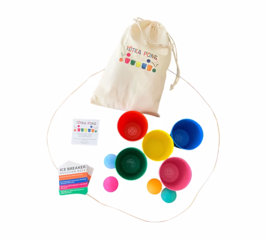 Totika Pong is a game of skill and communication. So much fun packed into an easy to carry drawstring bag, your children will ask to play again and again! This version comes with the Totika Icebreaker card deck but may be played with any Totika deck.