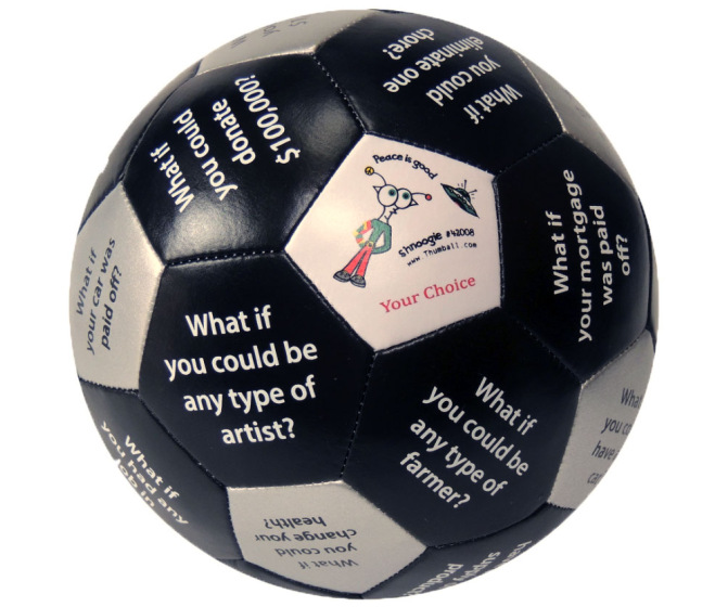 This 32 panel ball will get lots of use in your office or playroom! Just toss, catch, and respond to the panel under your thumb. Challenge children and teens to answer "what if" to a variety of questions. Enjoy building relationships, assessing insight, and having fun with this thumball. Sample panels include: "What if you could donate $100,000?" "What if you could eliminate one chore?"