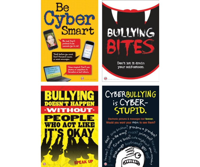 This set of four colorful, durable, high-gloss anti-bullying posters will help define your classroom and reinforce values. Hang them throughout your school to reinforce character development, bullying prevention, and positive behavior.