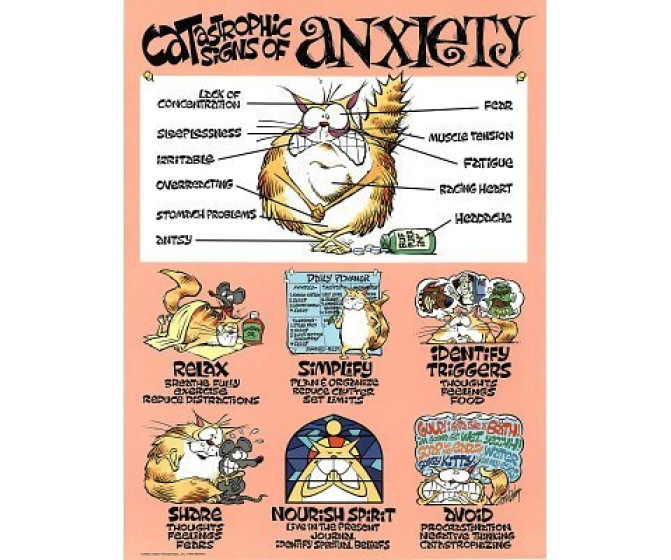 Large laminated poster displays signs and triggers of anxiety in a colorful, cartoonish way. Includes a guidebook featuring different activities for use in conjuction with the poster. Full color. 18" x 24".