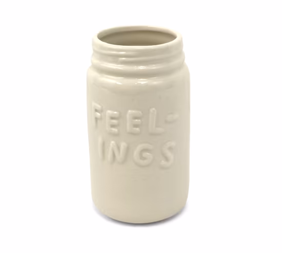 Embrace your feelings or, alternatively, bottle them up with this handy ceramic jar. Makes a great desk accessory, an attractive room accent, or use in conjunction with a deck of feelings cards (not included) as a focal point in many activities.
