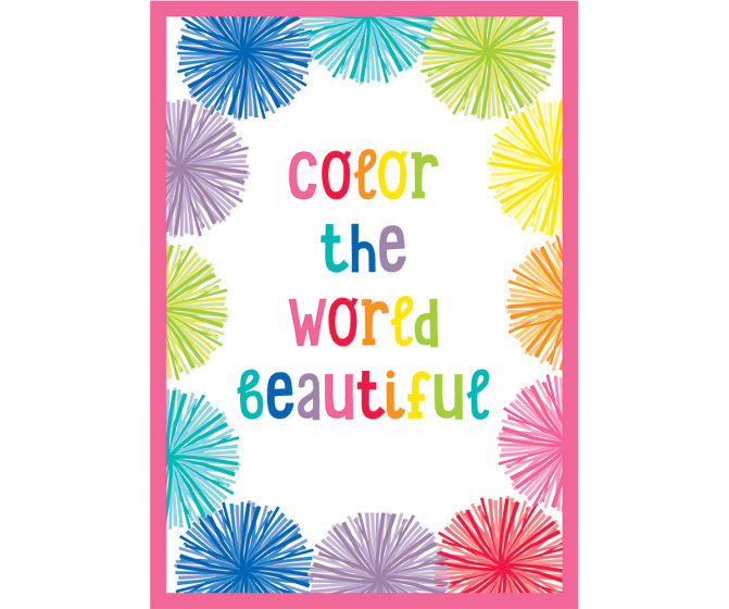Fun "Color the World Beautiful" poster will liven up your space as it encourages those within eyeshot to have a positive attitude. Full color print on thick material. Measures 13.3" x 19".