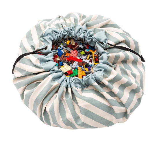 Loosen the drawstring and this portable toy storage bag becomes a play mat! Makes it easier to organize and transport your toys. Folds out to a 4.5' playmat.