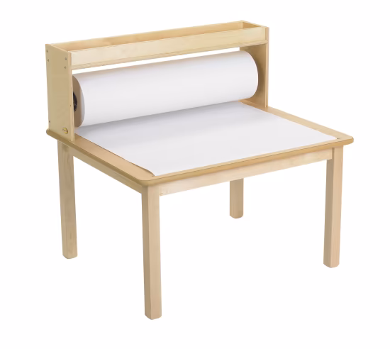 For ages 6-12. All-in-one art table inspires young artists by keeping all their necessary supplies handy. Arts and Crafts Table features an extra-wide, woodgrain laminate tabletop that is super easy to clean! The mounted paper roll (sold separately) can be pulled over the tabletop surface, and the deep storage area on top securely holds paints, brushes and more.