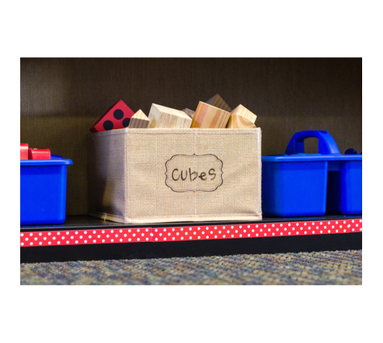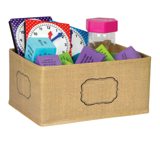 Organization is easy with these decorative storage boxes and bins. Keep manipulatives, books, notepads, educational toys, games, and supplies in these decorative organizers that feature a write-on/wipe-off surface for convenient labeling. The non-porous surface is easy to clean and can be wiped-down or sprayed with disinfectant to help prevent the spread of germs. The durable bins can also be folded for easy storage so you can take them out and use them year after year. Approx. 8" x 11" x 5".