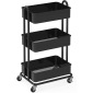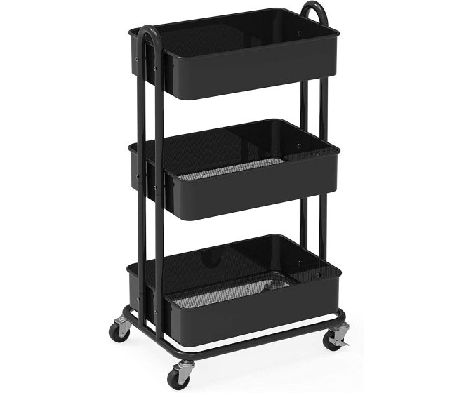 Get your office or playroom organized with our rolling metal utility cart. Featuring sturdy construction, each of the three shelves has a wire mesh bottom, and can hold up to 6.6lbs. Measures 29.9" tall, 16.8" long, and 13.9" wide. Assembly required.
