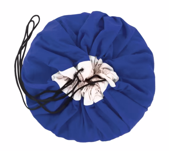 Home-based therapists, you'll love this! Large, sturdy storage bag doubles as a play mat. Bag lays flat when drawstrings not pulled, creating a boundary for play. Nice sized at 55" or a little over 4' in diameter. Fully washable, made of polycotton fabric. Great bag for storing games and toys.