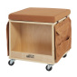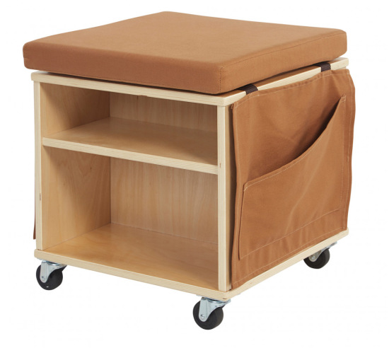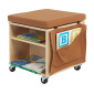 Portable stool and storage all in one. Neutral colored fabric and hardwood frame. Store books, fidgets, etc.. in the storage space. Perfect for a small office or a therapist needing a mobile seat. Get two for sand tray therapy- one for the client and the other to observe alongside the client. Measures 16.00" x 16.00" x 18.00". Minimal assembly required