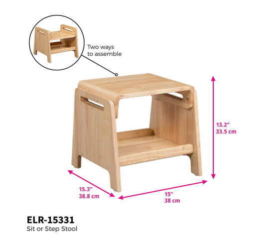 You pick! Assemble this piece as a step stool for reaching toys or minis or as a seat. However you set it up, there's a storage shelf underneath for books, supplies, or toys. Practical step stool for reaching minis on high shelves. Rounded edges for safety, made of hardwood to last. Adult assembly required. 15" L x 15.3" W x 13.2" H