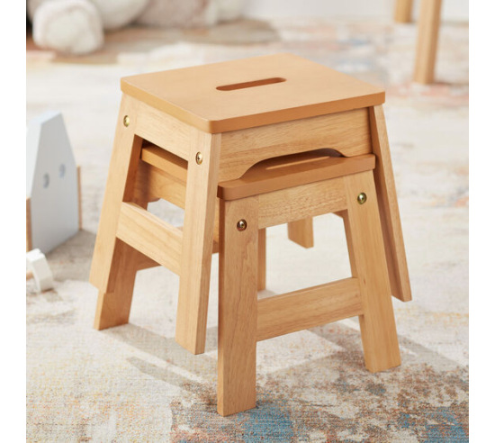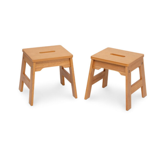Make a cozy seating spot for two! This set of two sturdy wooden stools is perfect for use around an activity or play table and makes a great addition to any kids play space. This pair of 11-inch-high stools wipes clean with just a damp cloth and fits any decor.