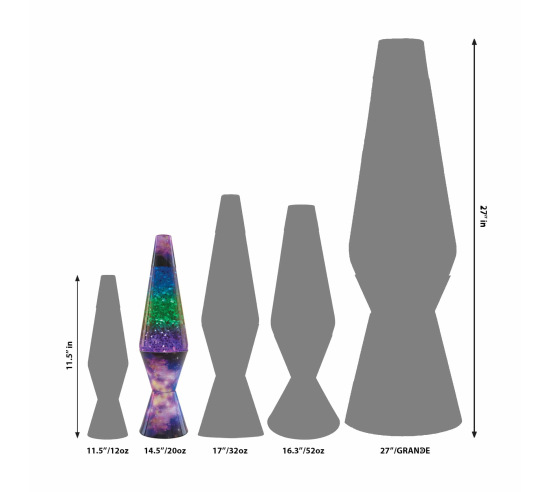 Featuring Silver star glitter in clear liquid, this LAVA® Lamp produces a soft warm light, coupled with the mesmerizing movement of glitter in liquid. 14.5" tall. 25 watt bulb included. Plugs into any standard North American power outlet.