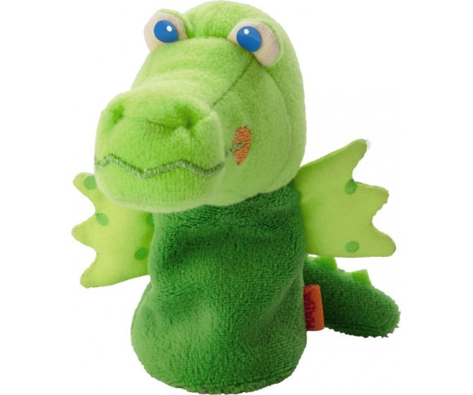 With it's cute blue eyes, polka dot wings, and crooked smile, this dragon finger puppet is ready for storytelling. Approximately 5" tall.