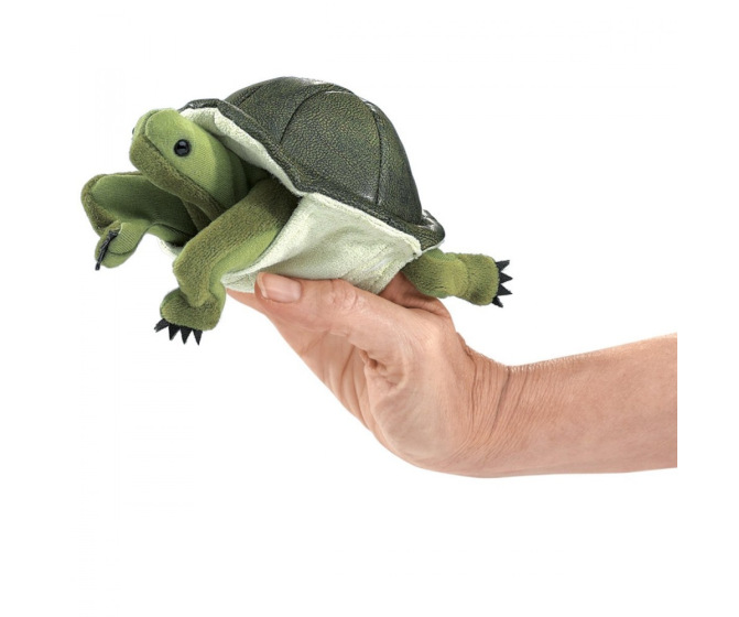 Children won't be able to resist this adorable little turtle. Fingers fit inside the head and front legs to animate the turtle. High quality Folkmanis brand. Size 6"x4"x2".