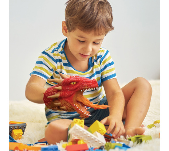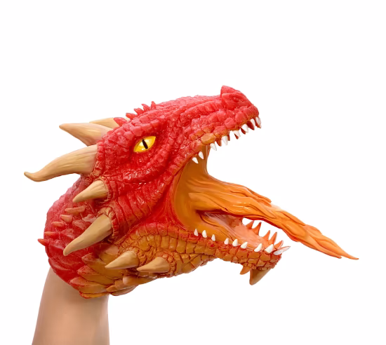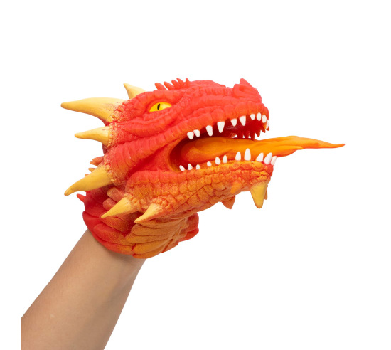 This realistic stretchy rubber dragon hand puppet is useful for injecting a bit of fire breathing into your session. The flame flicks out when the mouth is opened. 5" long. One size fits most kids.