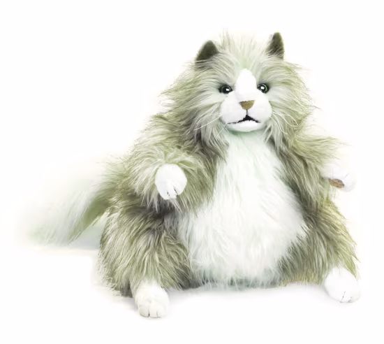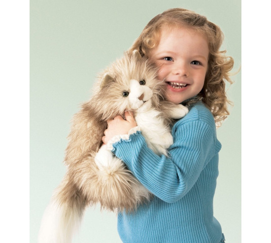 A soft, fluffy cat puppet from Folkmanis®. Animate it's mouth and front arms. Adorable cat for storytelling and general play. 14 x 9 x 12 inches