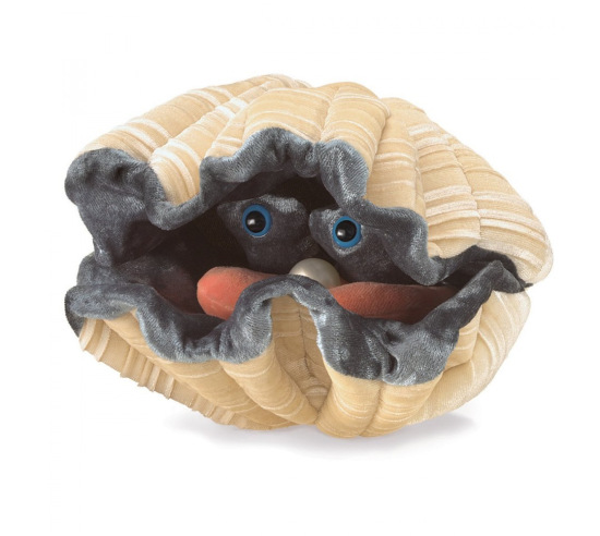 Animate the clam shell and eyes on this exquisite hand puppet from Folkmanis® to reveal a pearl tucked inside. A lovely puppet for discussing precious "pearls" inside everyone, self-esteem, and the benefits of self-expression. Puppet measures 6" x 7"x 4"Â