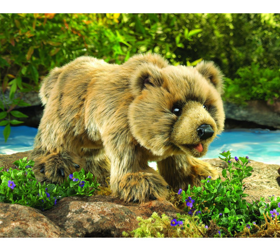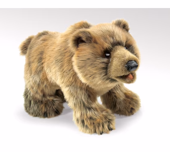 Though fierce in real life, this grizzly bear has soft claws, plush fur, and loves to cuddle. Movable mouth. 15 x 8 x 9 inches