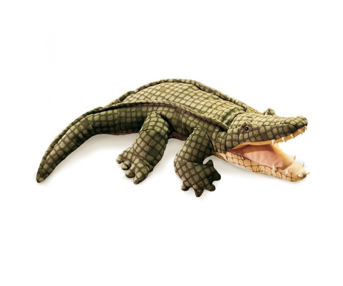 Full bodied alligator puppet by Folkmanis. Superior craftsmanship and realistic detailing. 24" in length, mouth can be animated.