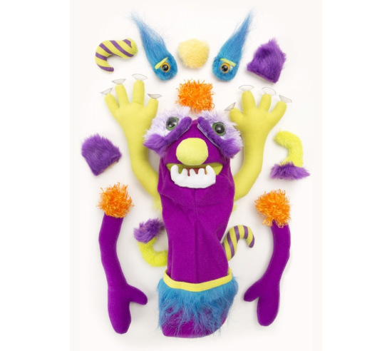 Conquer fears, express feelings, story tell, and learn about emotions while having fun with this monster puppet. Start with a purple monster puppet whose mouth opens and closes and add any of the 30 attachments for countless variations. Fabric is heavy and parts attach and remove easily with velcro. Add on teeth, arms, antennae, horns, eyes, fur, ears and more. Many unique textures to provide a wonderful sensory experience. So practical and fun you may want two.