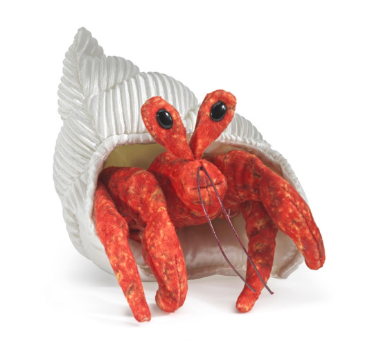 Inspire shy little ones to come out of their shell with the engaging Folkmanis® Mini Hermit Crab finger puppet featuring textured shell and printed crab body fabric. Use three fingers to move head and claws and pull in and out of shell for interactive fun. 5" mini puppet.