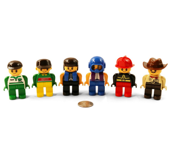 Fun little brick people! Great as multi-ethnic figures for sandtray, these neat little figures are also Duplo™ compatible. Includes 1 assorted figure from a variety of different uniforms, genders, and ethnicities. Includes 1 figure. Buy multiple figures for an assortment of different styles. 2 1/2" high.