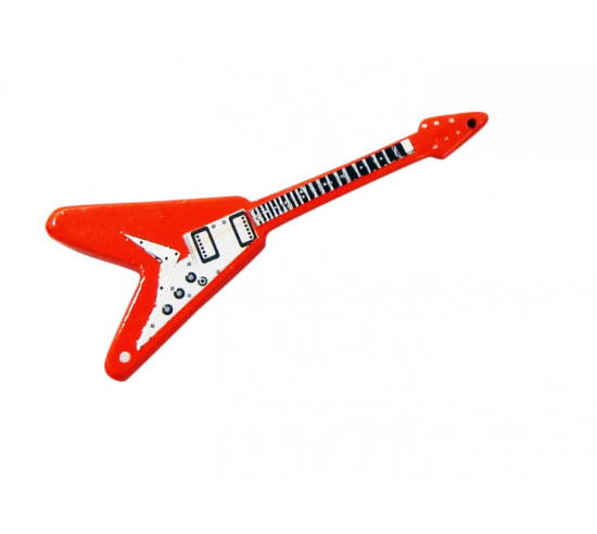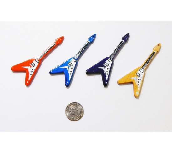 An electric guitar for rockin' in the sand tray. Plastic guitar measures 3 1/2" in length. Come in assorted colors.