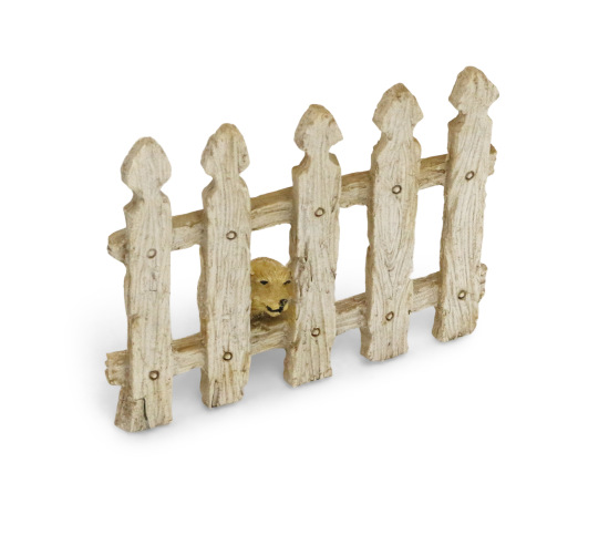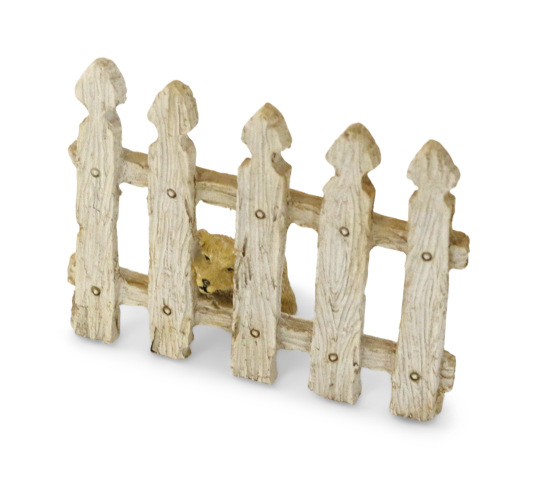 Does the little dog behind the fence feel safe and secure or does he feel stuck and want out? Let your clients tell you; we love this piece and think they will too. Resin, 2.5" tall, 3" wide.