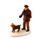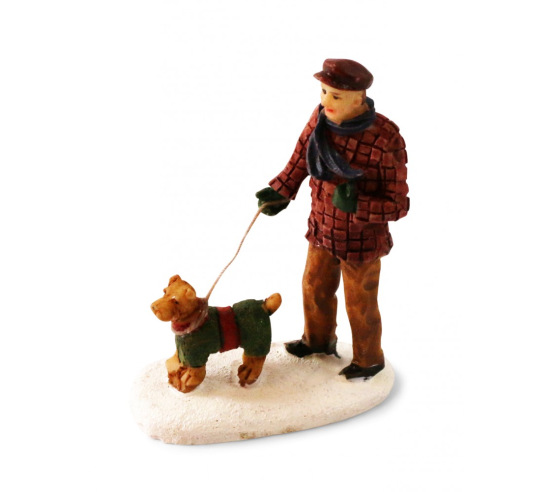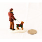 Brr, even the dog is bundled up. A miniature man walking a dog in the snow for sand tray therapy. Resin, 2 5/8" tall.