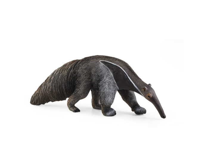 The anteater lives in the savannas and grasslands of Central and South America. The mammal feeds primarily on ants and termites. To get them out of their nests, the anteater bores in with its long snout, then sticks out its 60 cm long sticky tongue. Anteaters also have a bushy tail that looks bigger than it actually is due to the long hair.