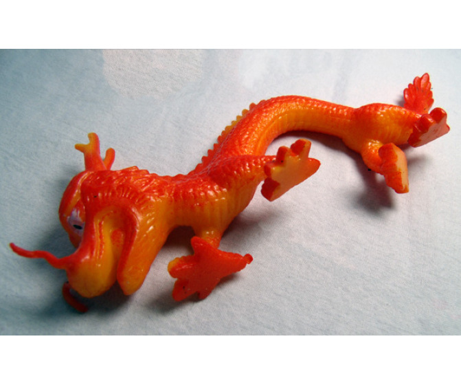 This yellow and orange dragon is 5" long and stretches to 10". It is a Chinese Dragon. For use with sand tray therapy.