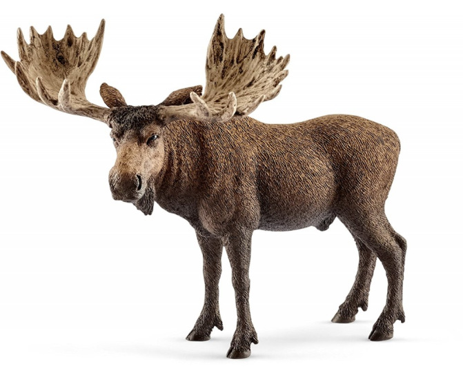 A solid figure, well-detailed, the moose bull is native to various parts of the world. Figure measures 3.2 x 5.4 x 4 inches.