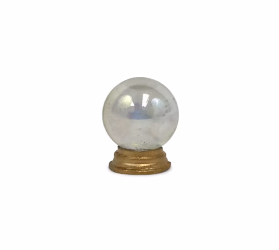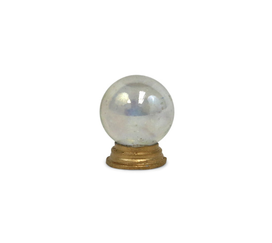 We see a new mini in your future... Crystal ball on gold-colored pedestal for sand tray therapy. This small piece may be used frequently. Made in U.S.A. ; 0.5" tall.