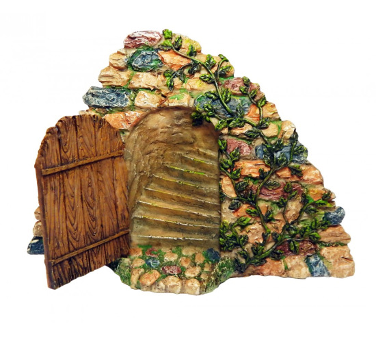 A stone wall with a hinged door. Behind the door lies a staircase, in a beautiful representation of ascension. Measures 8" x 1/2" x 5 3/4".