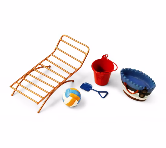 All that's left for a relaxing day at the beach is the sand! Kit includes a bronze lounge chair, sand bucket and shovel, beach bag, and volleyball. Assorted sizes from 1.5" to 4.25".