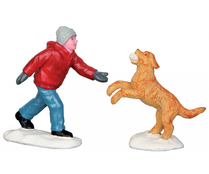 This two piece set includes a young boy playing catch with his dog for sand tray. Measures 2.20" tall. Made of polyresin.