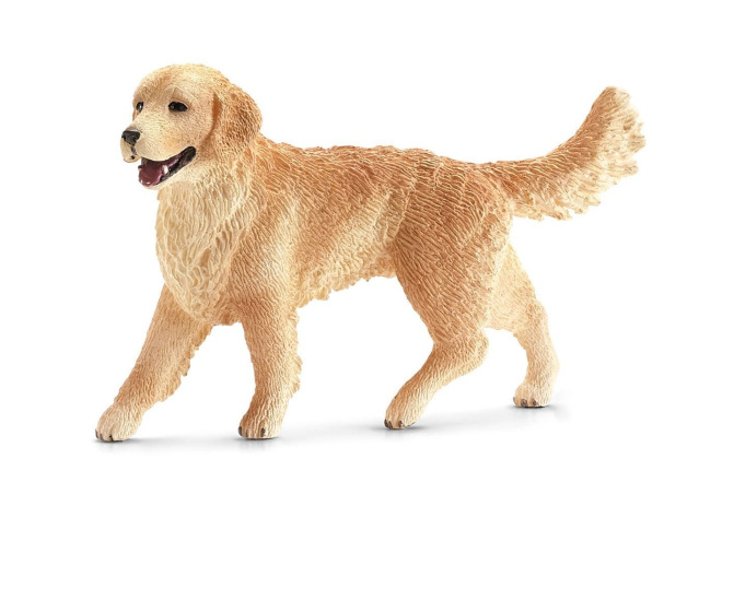 Golden retrievers are known to be intelligent, loyal, and very friendly to people and other dogs. Figure is 3 inches long.
