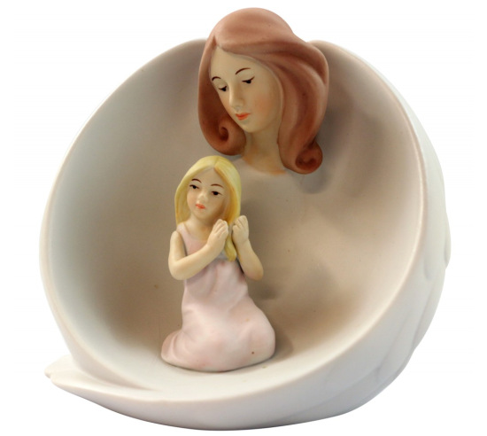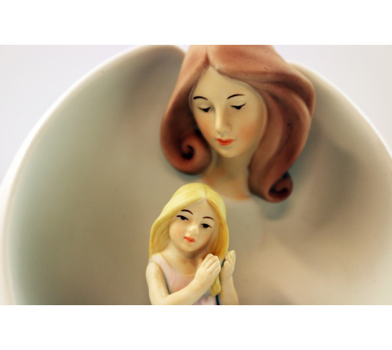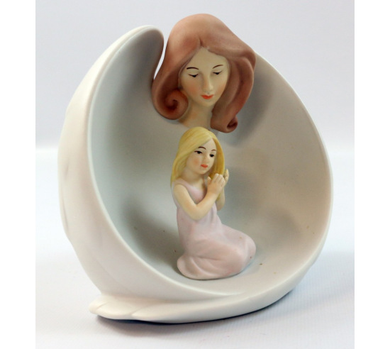 This guardian angel will be a stunning addition to your sand tray miniature collection. A porcelain angel with wings protectively surrounding a kneeling girl. Measures 4 9/16" x 2" x 5".