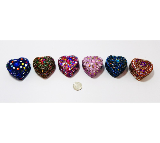 What do your clients hold dear in their hearts? A sequined heart box in assorted colors that is pretty and practical. Small tokens of love and affection can be placed inside. Made of aluminum and plastic, measures 2".