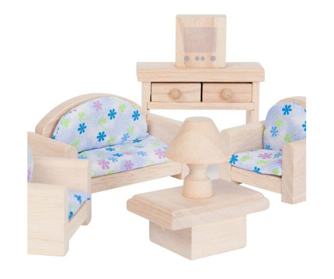 Children can enjoy decorating their dollhouse while developing their imagination with this classic set of living room furniture. Standard-sized wooden furniture fits most dollhouses.