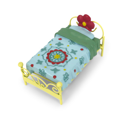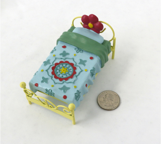 A whimsical bed for sand tray therapy. Made of metal, 4" long.