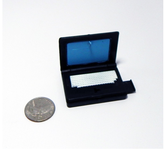 A plastic laptop computer for sand tray therapy. Laptop opens with a cd rom drive that pops out. Measures 2" x 1/2" x 1/2" when closed.